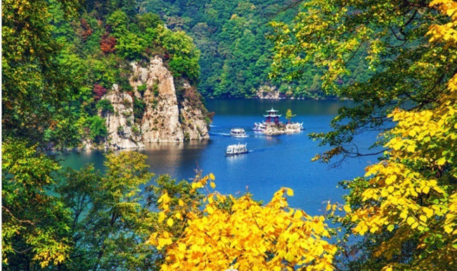 吉林龙湾国家级自然保护区位于吉林省长白山系龙岗山脉中段,吉林省通化市辉南县境内。保护区内7个火山口湖,呈北斗七星状排列,分布在方圆不足30公里的范围内,数量之多、成因之典型、保存之完整国内罕见,被火山地质专家们誉为:“中国空间密度最大的火山口湖群”。龙湾属于不定期喷发的休眠火山,宣教馆内的火山熔岩球、七彩矿石、熔岩喷出椎等都是它的产物。